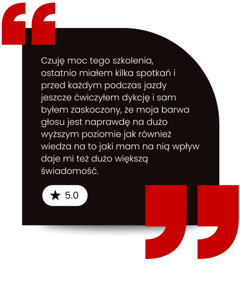 który nauczy Cię panować nad tempem, głosem, emocjami i ciałem  tak, byś w każdej rozmowie brzmiał z pewnością i spokojem.